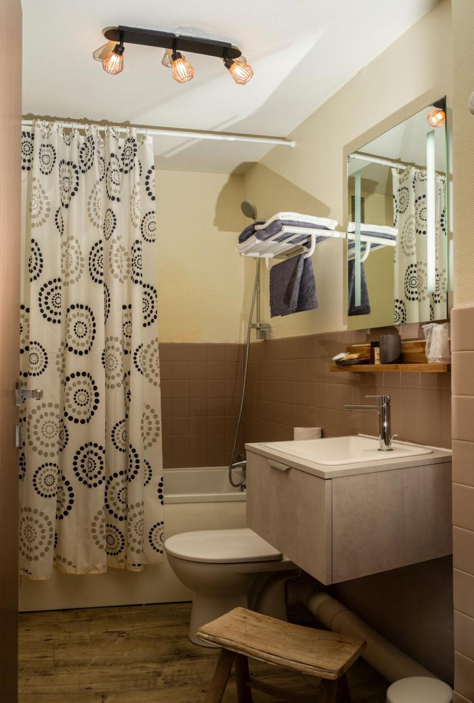 Chambre Lits Jumeaux. La chambre lits jumeaux comprend une salle de bains privative avec une baignoire ou une douche et un sèche-cheveux. Cette chambre lits jumeaux avec vue sur la montagne dispose du chauffage et d’une télévision à écran plat. Ce logement comprend 2 lits. ;