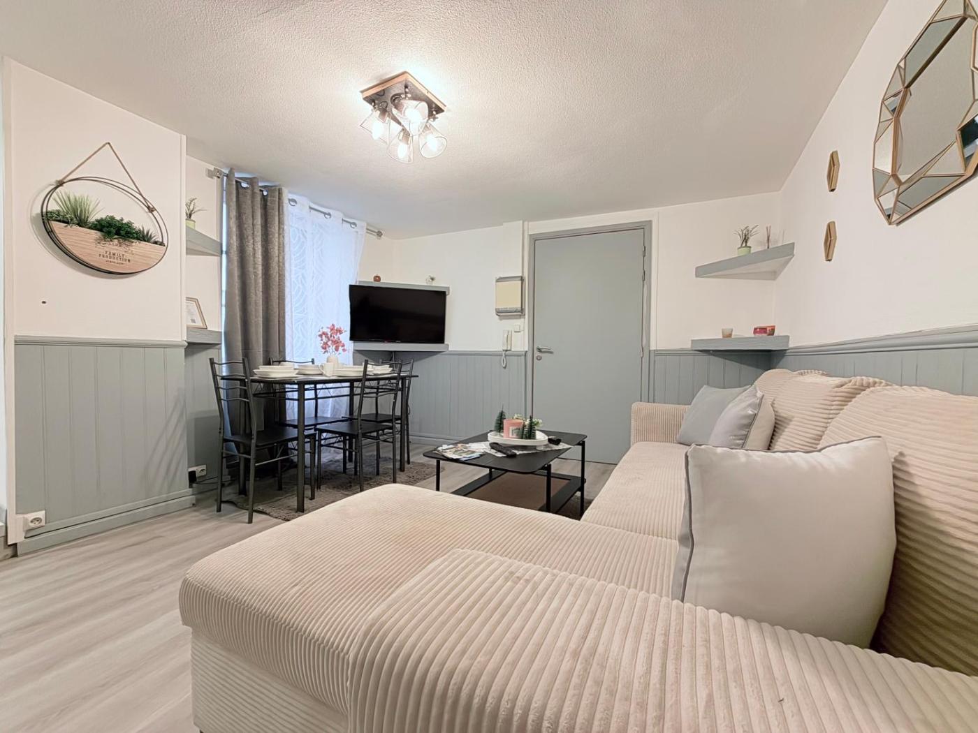 Appartement 1 Chambre. This apartment consists of 1 living room, 1 separate bedroom and 1 bathroom with a shower. In the well-equipped kitchen, guests will find a stovetop, a refrigerator, kitchenware and a microwave. A seating area with a flat-screen TV, a coffee machine and a terrace are provided in this apartment. The unit offers 2 beds.