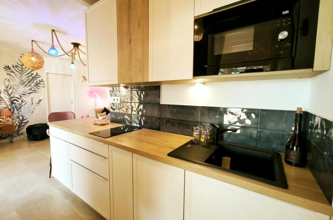 Appartement 1 Chambre. Featuring a private entrance, this apartment comprises 1 living room, 1 separate bedroom and 1 bathroom with a shower and a hairdryer. Meals can be prepared in the kitchen, which comes with a stovetop, a refrigerator, a dishwasher and kitchenware. Boasting a terrace with sea views, this apartment also provides a washing machine and a flat-screen TV. The unit offers 1 bed.