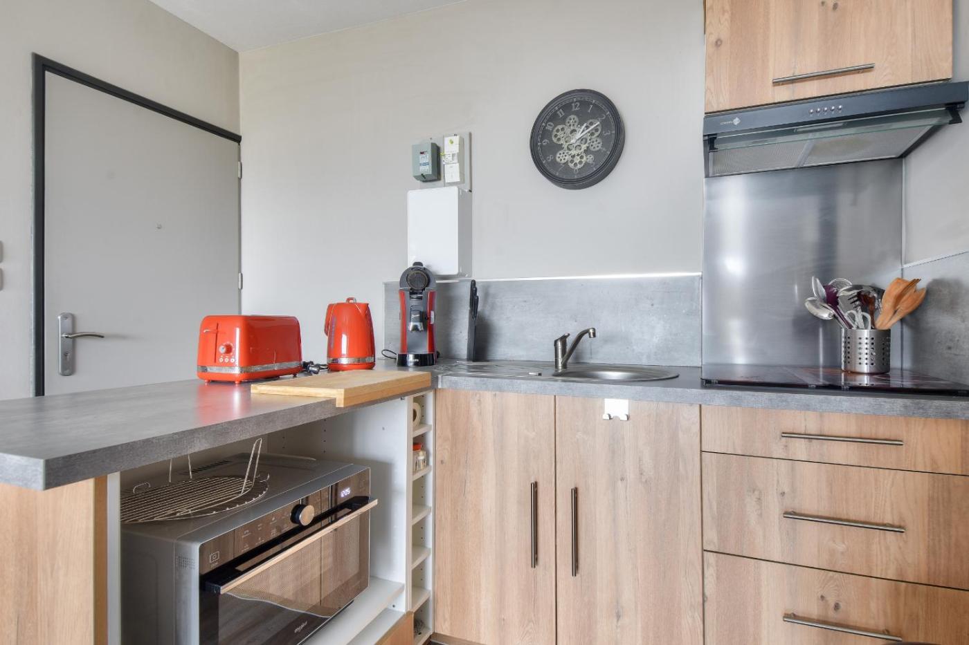 Appartement. This apartment is comprised of 1 living room, 1 separate bedroom and 2 bathrooms with a bath and a hairdryer. Guests can make meals in the kitchen that is fitted with a refrigerator, kitchenware, a microwave and a tea and coffee maker. Featuring a balcony with sea views, this apartment also offers a washing machine and a TV. The unit offers 2 beds.