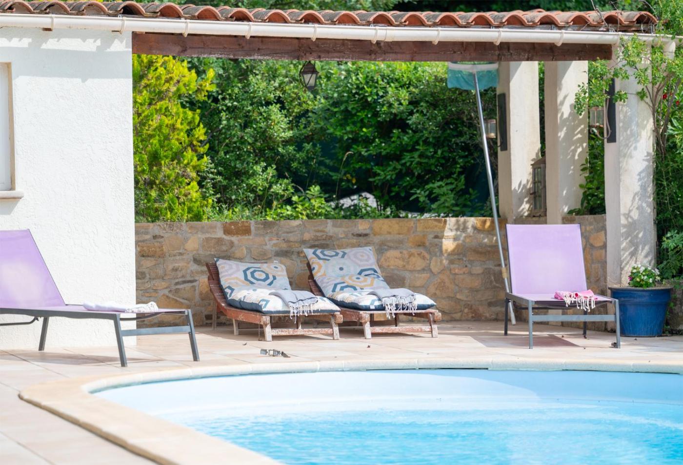 Maison de Vacances. This villa boasts a private pool and a fireplace. This villa comprises 2 bedrooms, a kitchen and 2 bathrooms with a shower. Guests will find a refrigerator, a dishwasher, kitchenware and an oven in the well-equipped kitchen. The villa also provides guests with a barbecue. The villa provides a TV with satellite channels, a washing machine, a tea and coffee maker and heating. The unit offers 5 beds. ;